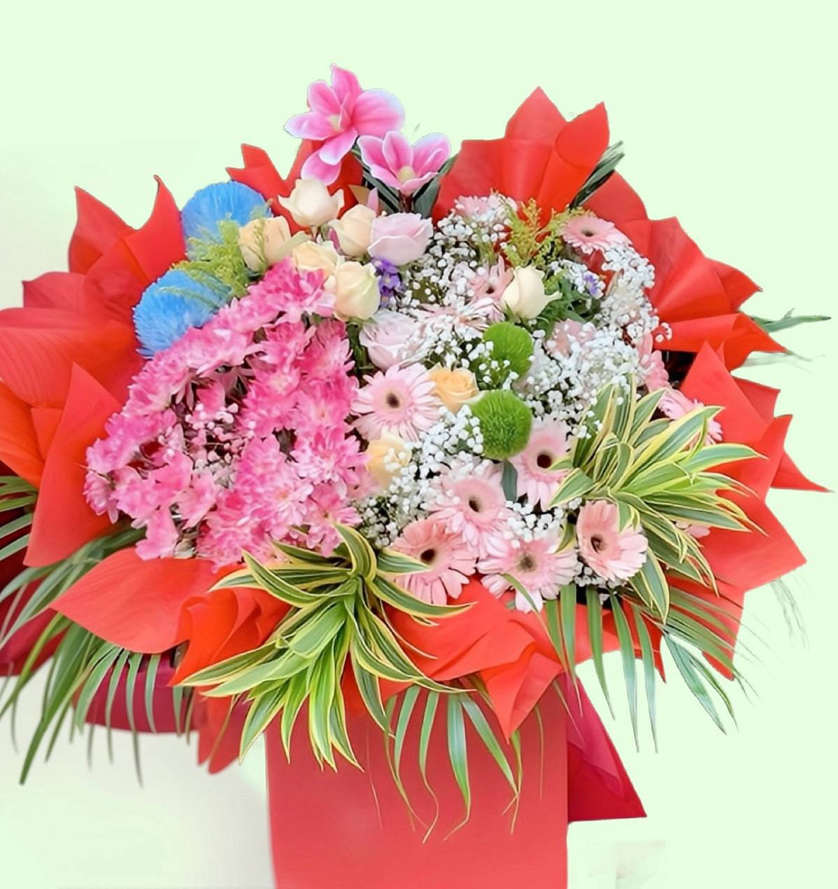 Bring light and joy to a new venture with this vibrant stand of roses, gerberas, and chrysanthemums. Designed to radiate cheer and optimism, this arrangement is ideal for sending warm congratulations for events like anniversaries and opening of a new business without stretching your budget. Perfect for friends, colleagues, or small businesses celebrating a fresh start.