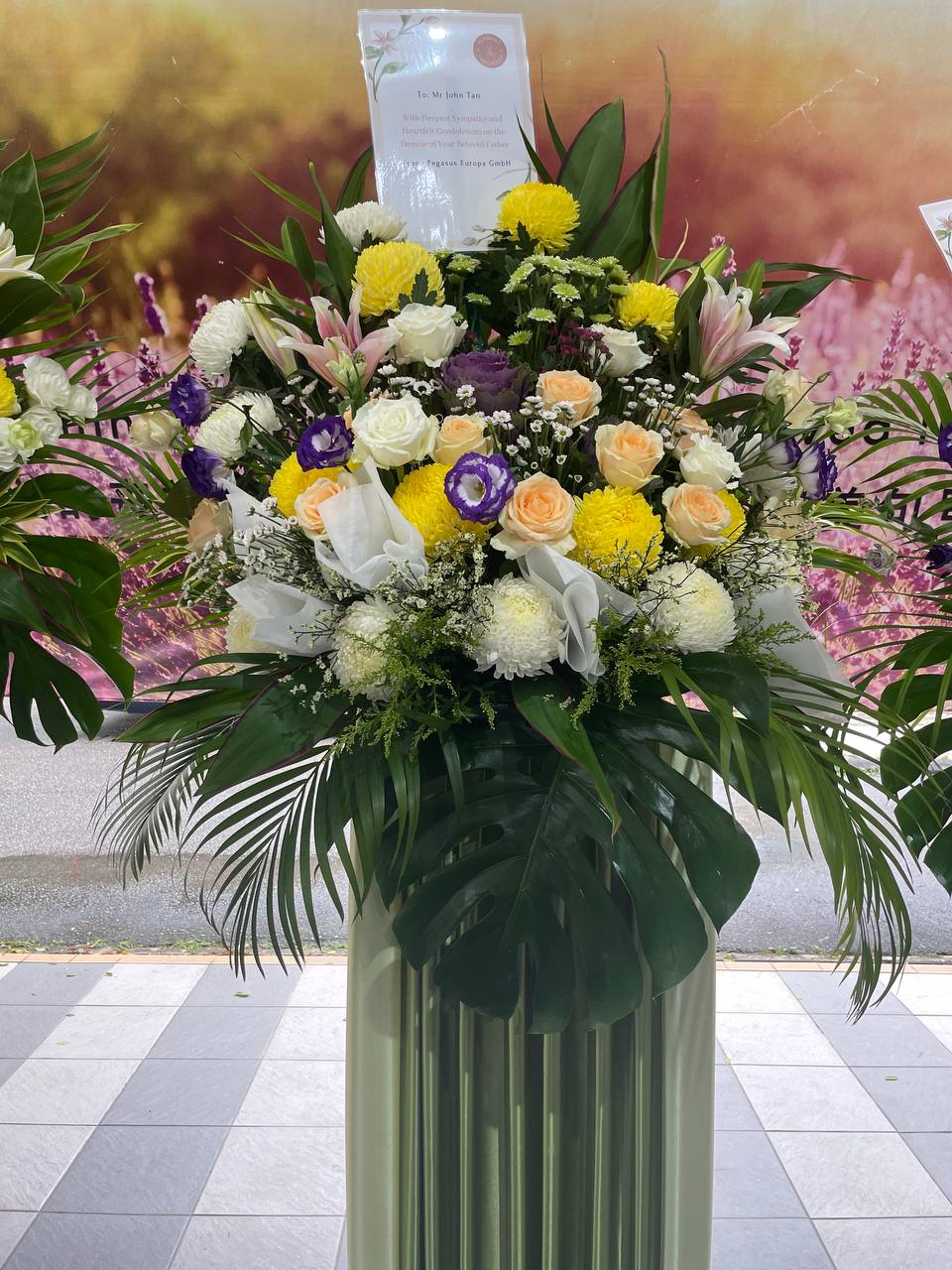 Send someone who lost a loved one a floral wreath to convey your condolences towards the family of the bereaved.